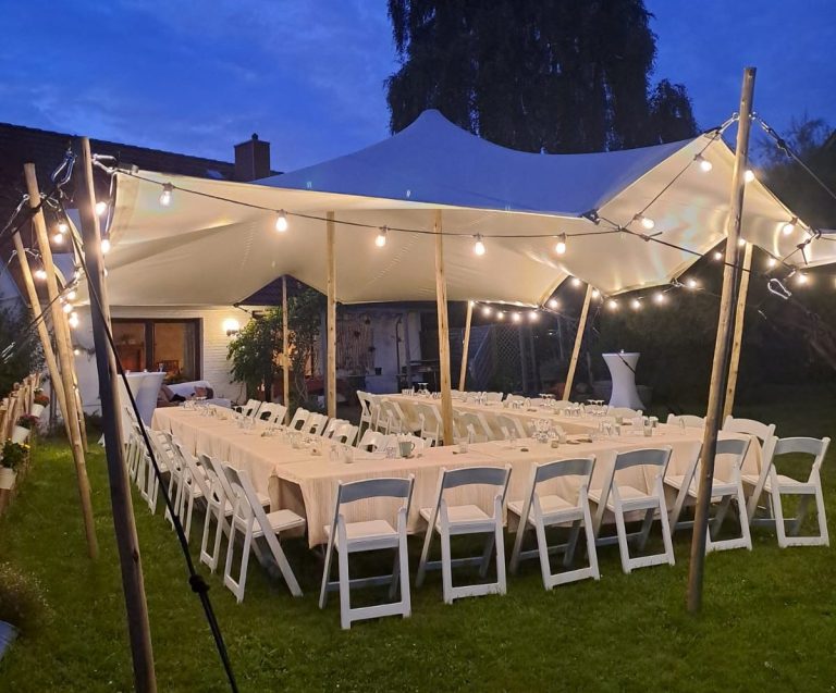 Das Stretchzelt verleiht jeder Veranstaltung eine einzigartige Atmosphäre. Es Schutz vor Regen und spendet auch angenehmen Schatten an sonnigen Tagen.